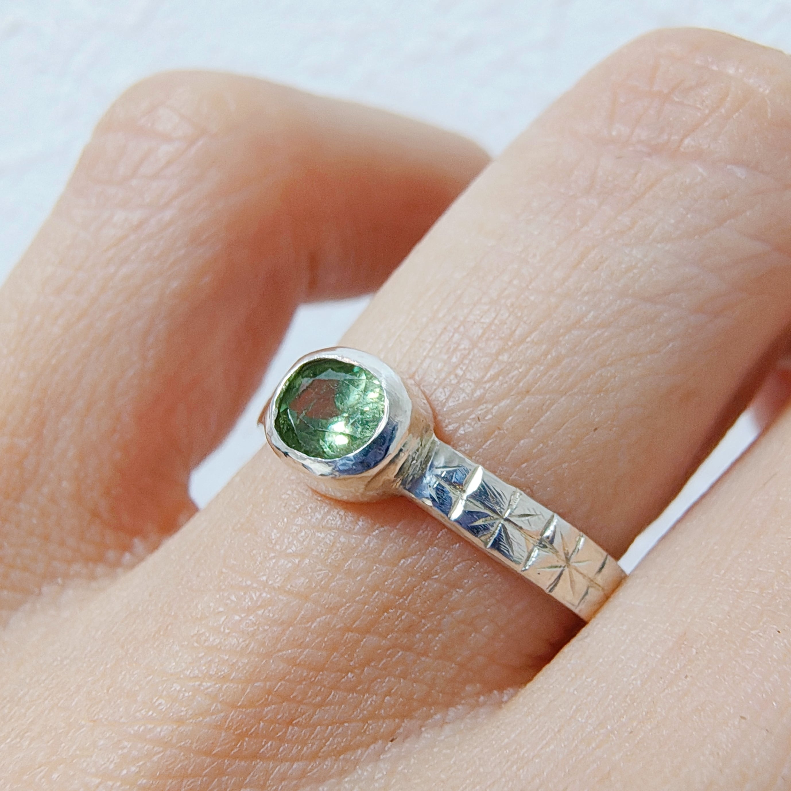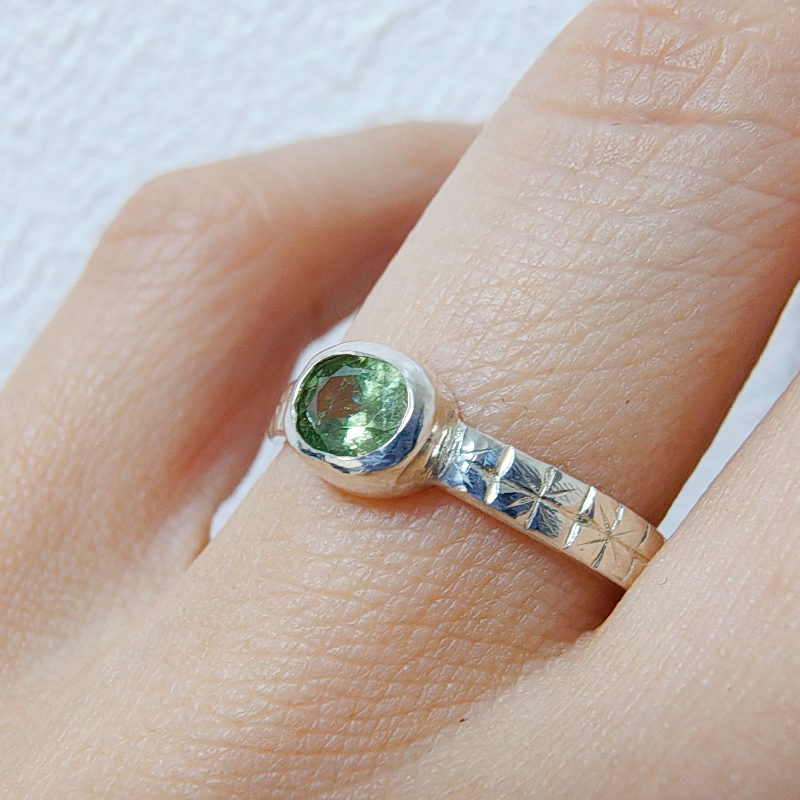【一点物】デマントイドガーネット 10号 シルバーリング 《雑誌mina掲載》手彫り 勿忘草 シルバー925 SV925 超希少 モダン 普段使い シンプル ワンポイント | Mirallia925(ミラリア)