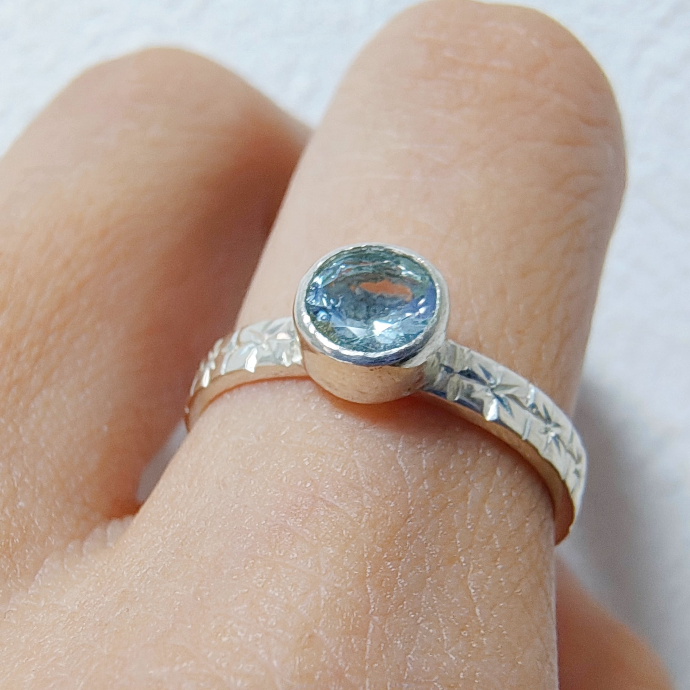 商品:13号 シルバーリング アクアマリン 勿忘草 彫り模様